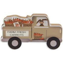 Farm Fresh Carrots Chunky Truck is a wooden sitter perfect for a variety of fall looks! Truck is freestanding and features a tan print with carrot detailing and a rabbit seated in the passenger seat. Truck reads, "farm fresh carrots" in black text and it is easily displayed on shelves, mantels, or tabletops. Measures 4.75" wide by .75" deep by 2.75" high.