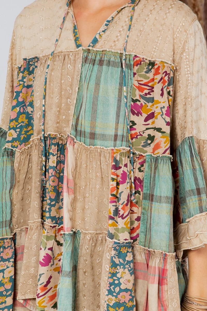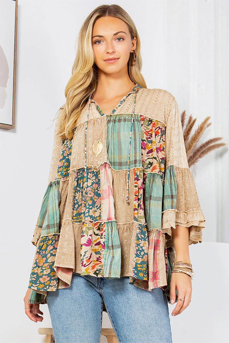 Medley of rayon embroidery, prints, and cotton checks patchwork - This top is available in a variety of colors and patterns, so you can find the perfect one to match your style.